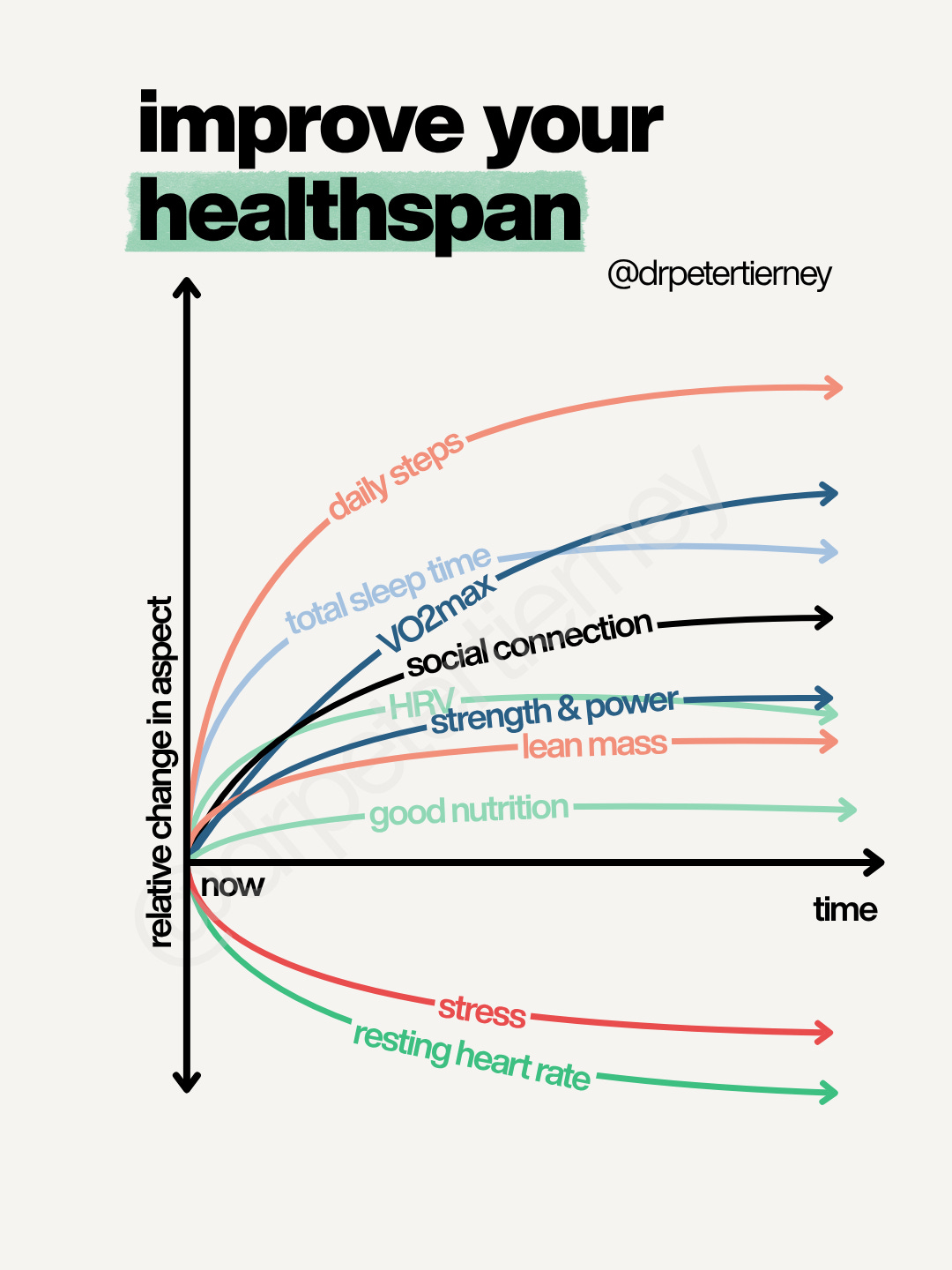 Other factors like VO2max, strength & power, lean mass — as physical parameters, and social connection, are vital to increasing your healthspan and reducing mortality risk,