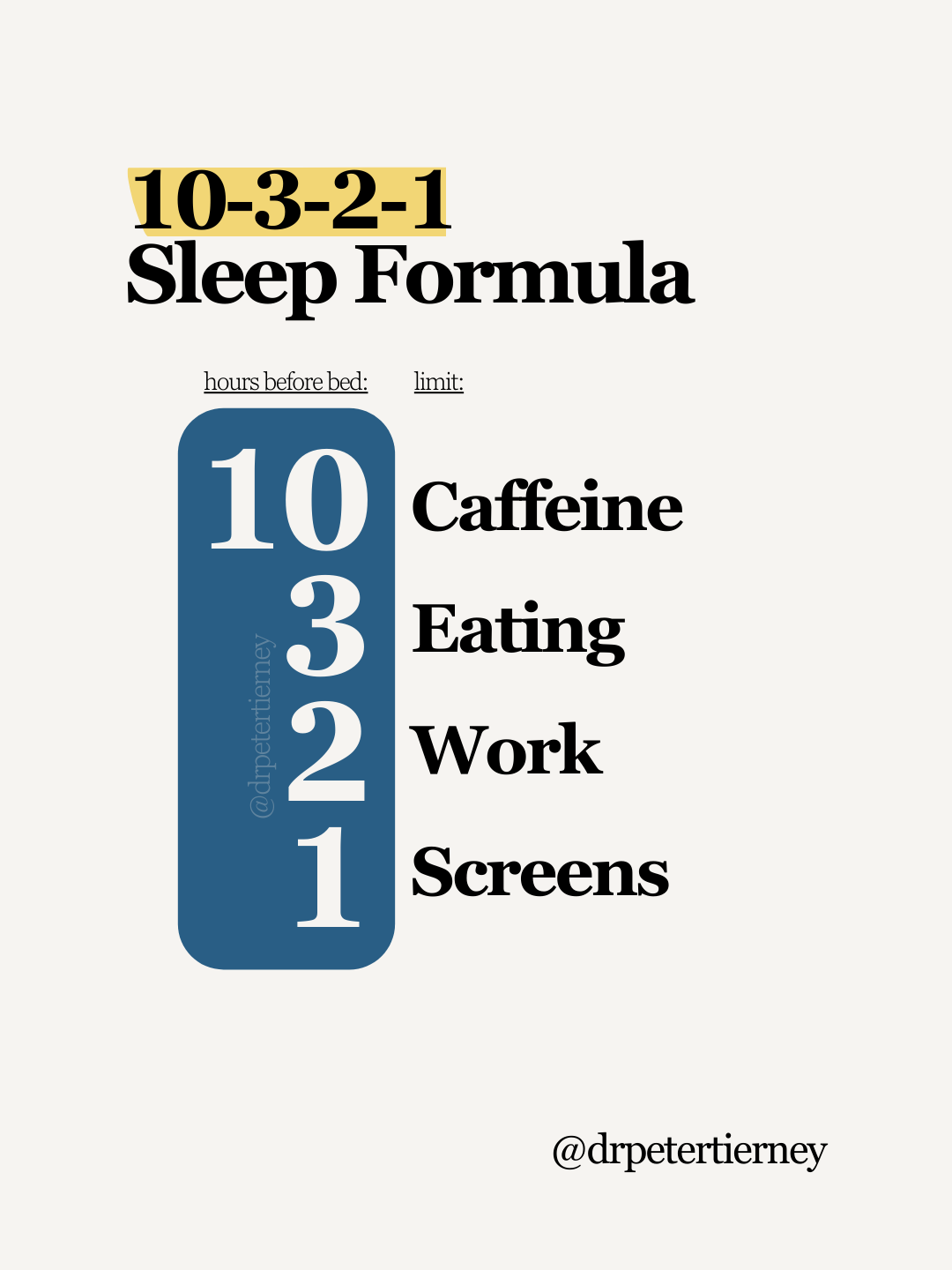 One of the visuals that has resonated with many of my network is the a sleep formula — the 10-3-2-1 Sleep Formula.